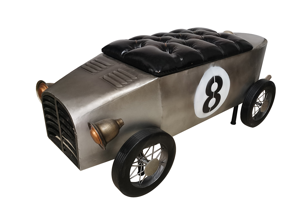 Notre gamme phare ART DE FER présente des meubles en métal originaux et de haute qualité. Cette petite voiture ancienne jaune est multifonctions, puisqu'elle s'utilise comme banc avec son coussin d'assise confort, mais elle a également un coffre puisque la partie de l'assise se soulève. Vivez à l'ère du style vintage, et adoptez plusieurs accessoires industriels. Existe en rouge, gris, et jaune.