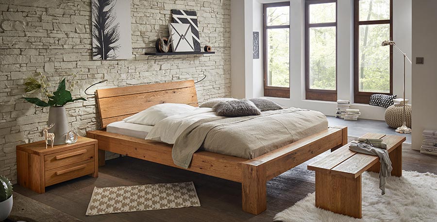 Sauvage et farouche, les noeuds et rayons ligneux qui se forment naturellement dans le chêne sauvage créent des contrastes de couleur et de structure fascinants qui confèrent à nos meubles en bois massif de la série Oak-Wild leur caractère particulièrement vivant. De plus, les nombreux pieds et têtes de lit existant dans différents matériaux se prêtent à des combinaisons excitantes.