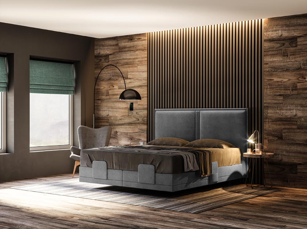 Avec sa Box recouverte de tissu, ce système de literie rappelle l’apparence classique des boxspring, sauf qu’au lieu d'un noyau à ressorts ensachés, le lit est combiné à un sommier à lattes bridge®.