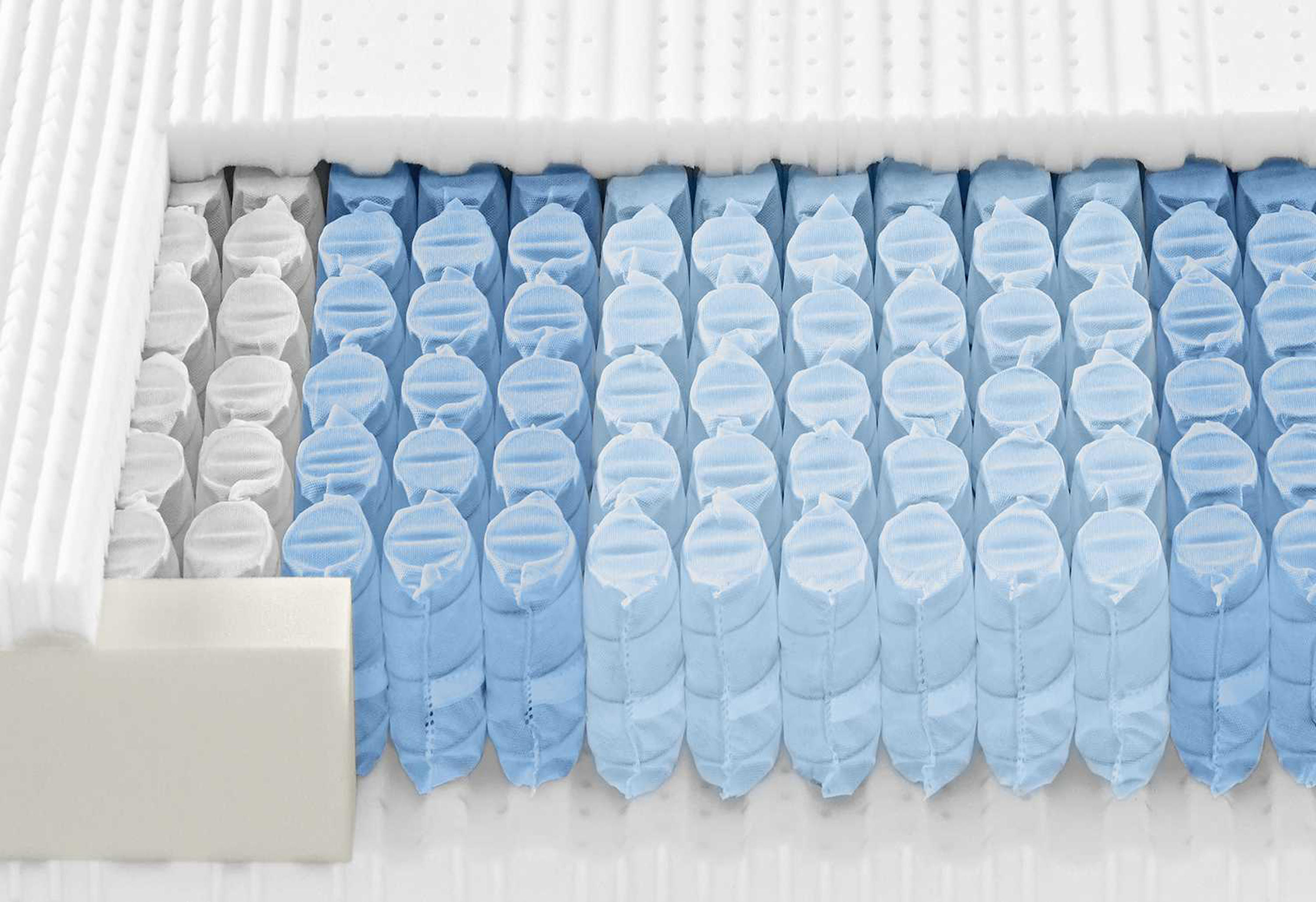 Noyau 7 zones, aéré et ultraflexible, avec ressorts tonneaux ensachés individuellement pour un soutien différencié et progressif. Plateau Pro-Senso anticompression des 2 côtés, en Porotex Embrace extrasouple. Perforations verticales Airvent avec plus de 1500 canaux de ventilation au m2 traversant le noyau du matelas. Zone de confort très élastique au niveau des épaules et soutien intégré au niveau du bassin et du dos. Hauteur du matelas 22 cm