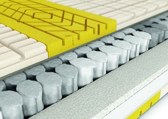 Noyau: ressorts ensachés VESPA 7 zones de 14 cm. Zones de confort pour les épaules et le bassin ainsi qu'un soutien supplémentaire des lombaires. Plaque visco de 4 cm de chaque côté avec profilage transversal. Elément OmniPUR extra-souple dans la zone épaules, bords renforcés.